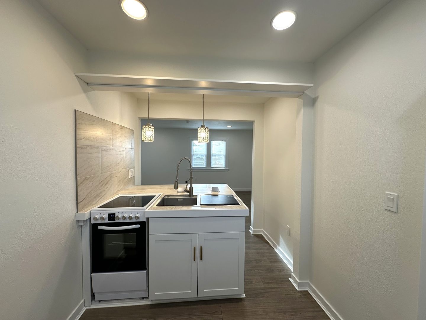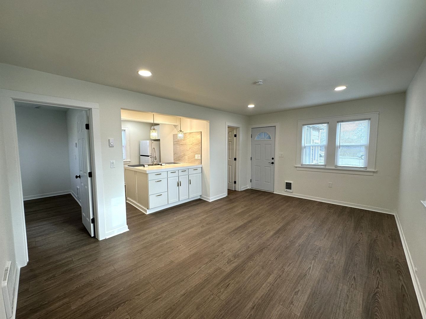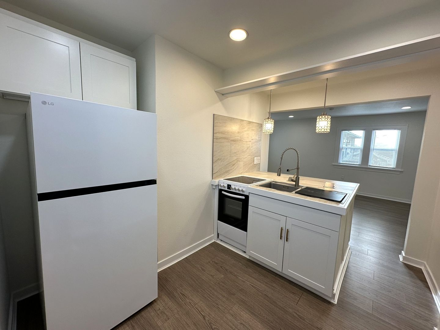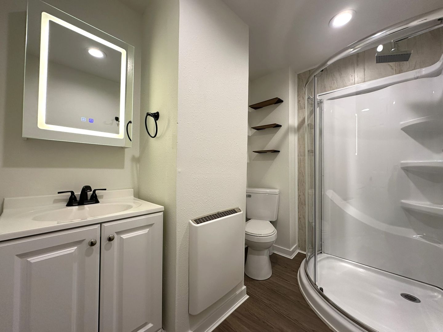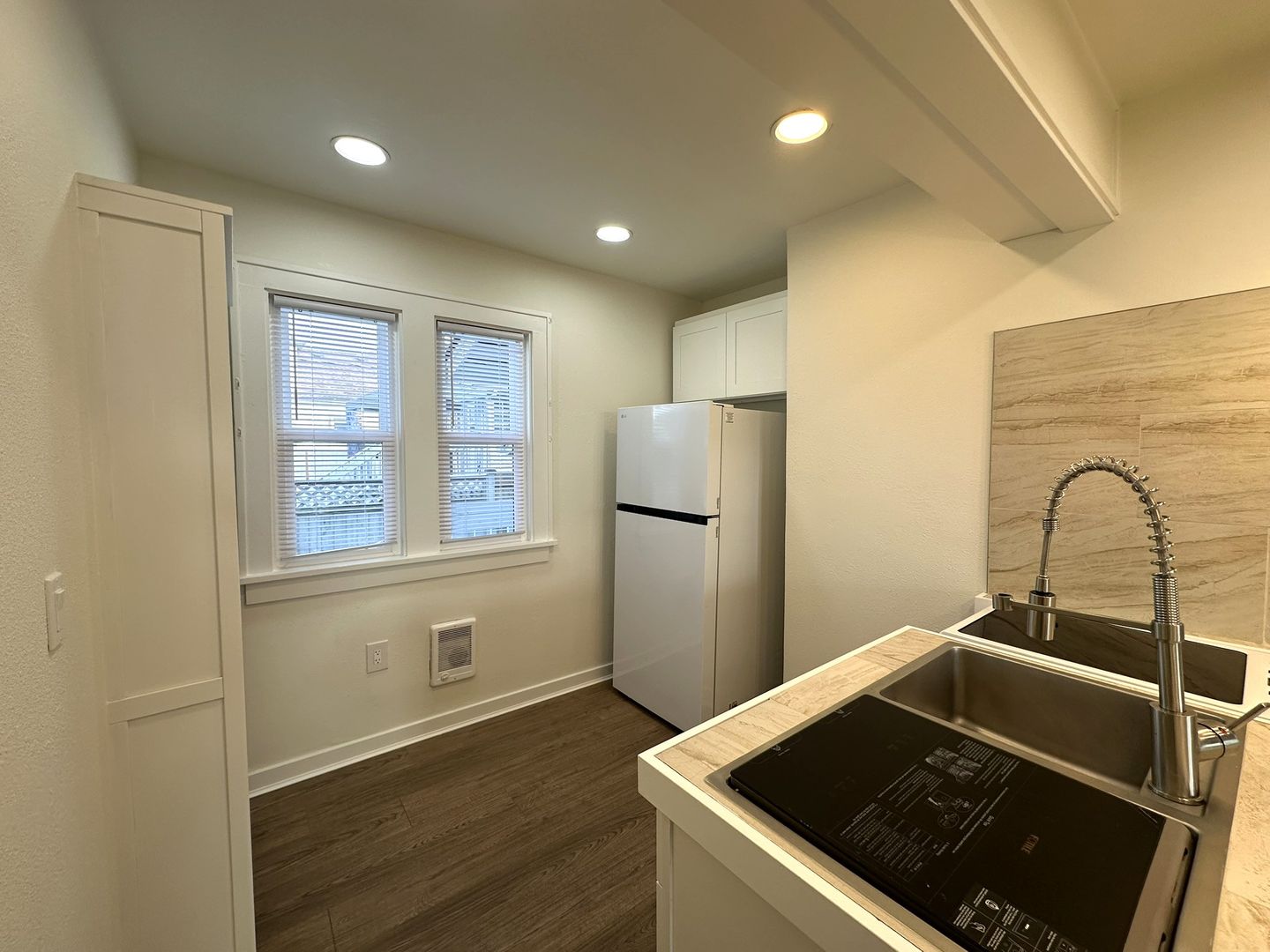 Welcome to this beautifully updated 1-bedroom, 1-bath apartment in a charming 4-plex in North Everett. The unit has been freshly painted and features modern light fixtures throughout. The kitchen includes a brand-new refrigerator, stove/oven, a convenient countertop dishwasher, and built-in storage, while lots of windows allow natural light to flood the space, creating a bright and airy atmosphere. The bathroom is a standout with a unique circular-door shower, updated vanity, and a mirror with built-in lighting and defrost feature.