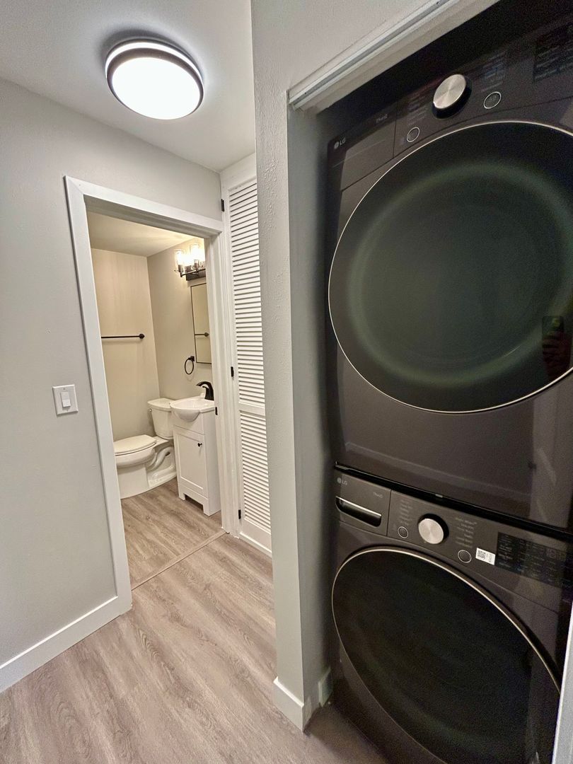 The unit showcases wall to wall LVP flooring, adding to the charm and beauty of the space. Easy to clean! In addition to the spacious design, this unit comes equipped with its own washer and dryer and dishwasher!