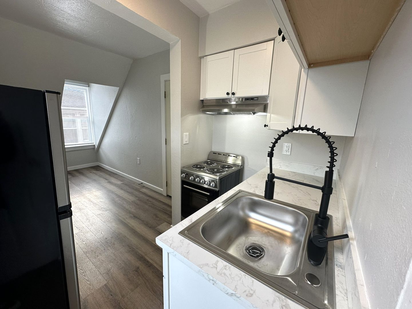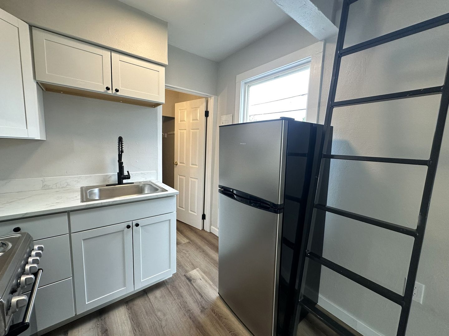 Experience modern comfort with historic charm in this beautifully renovated 325 sq ft studio apartment. Featuring brand-new stainless-steel appliances, a sleek new kitchen, and fresh LVP flooring throughout, this space is designed for convenience and style. The sizable bathroom offers plenty of space, while the original crown molding adds timeless character. Enjoy breathtaking views of the Everett Waterfront from the expansive shared wrap-around porch. A unique lofted bedroom space, accessible via ladder, provides a cozy retreat. Don’t miss the opportunity to live in this one-of-a-kind, stunning apartment!