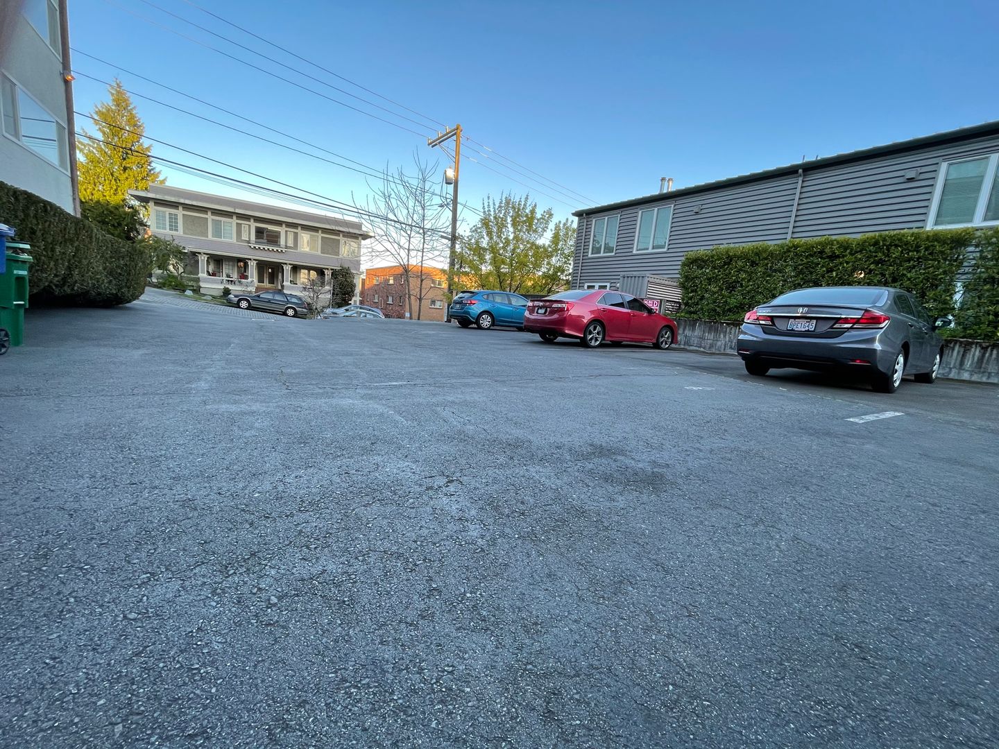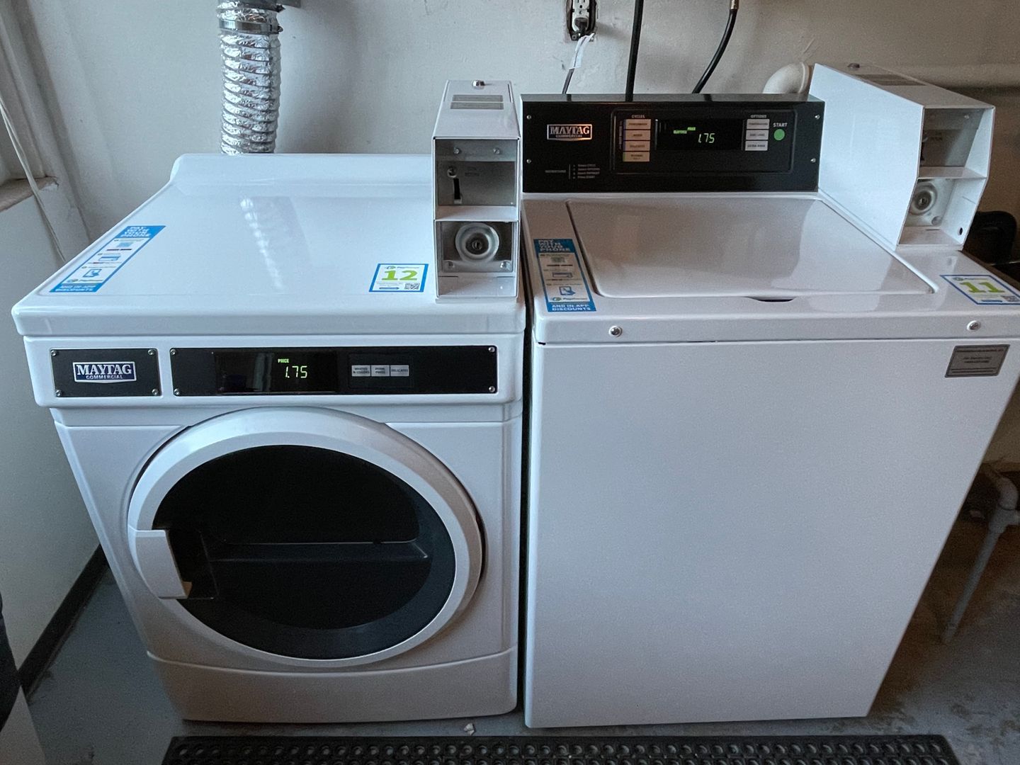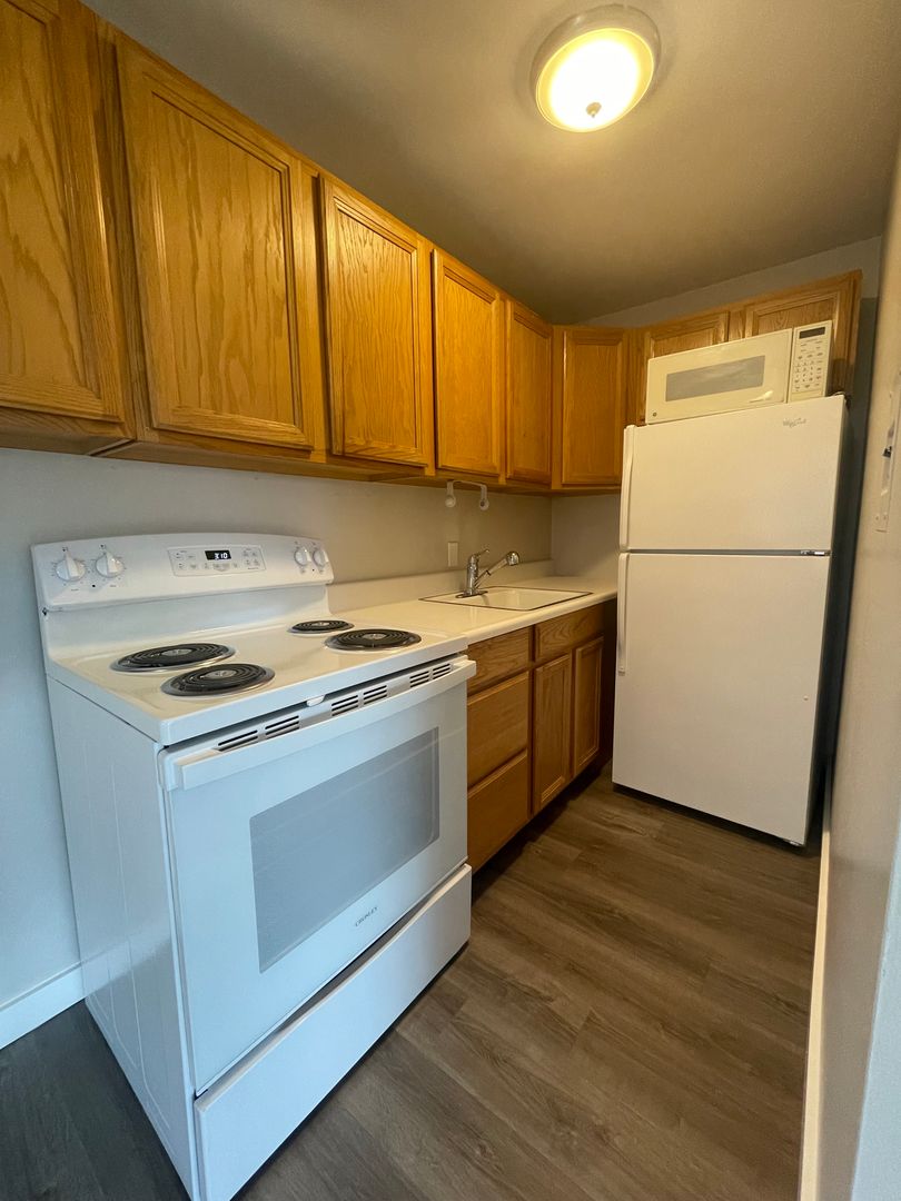 There are two sets of paid washers and dryers on site as well as off-street parking available for an extra $75/mo.