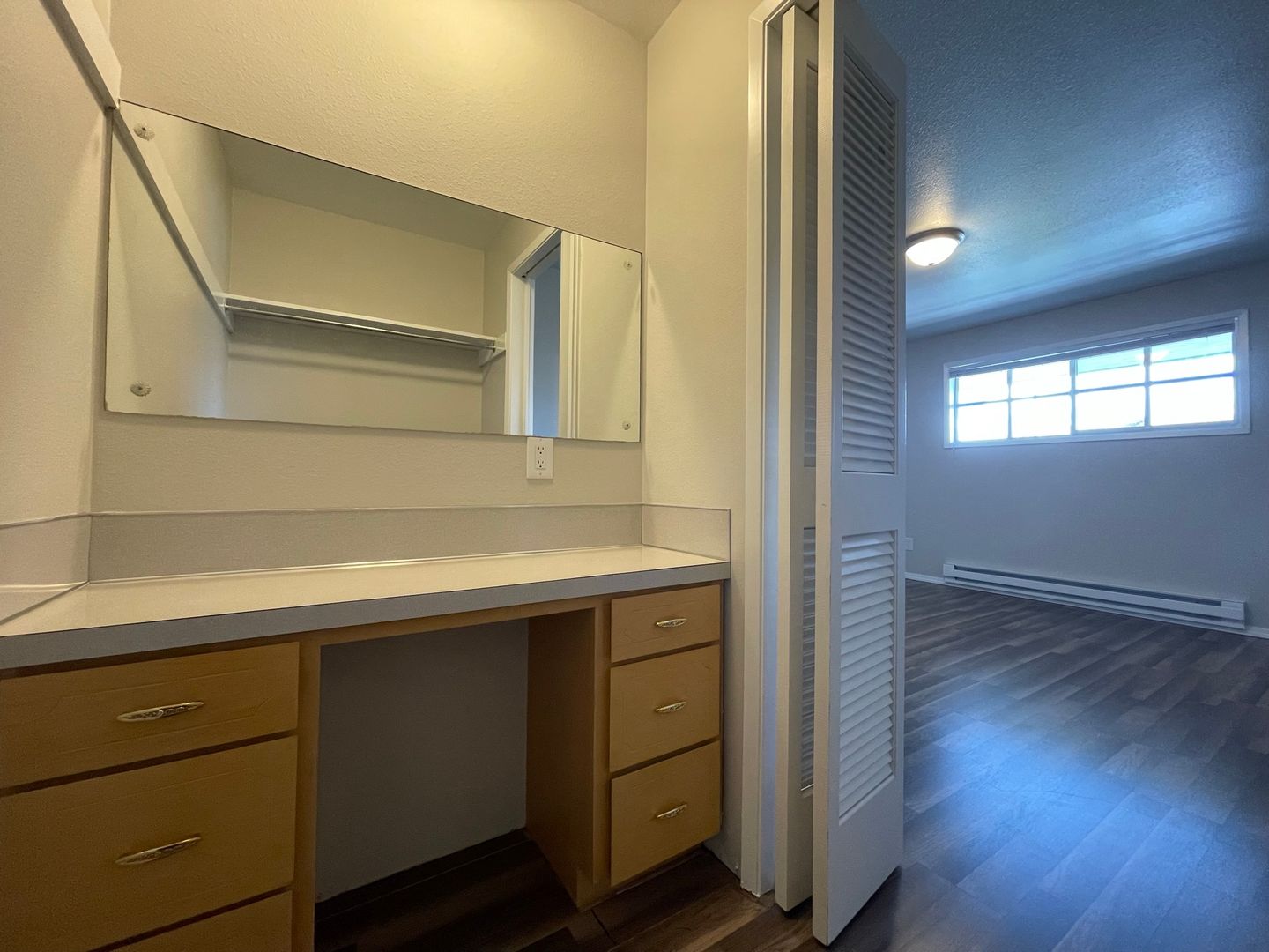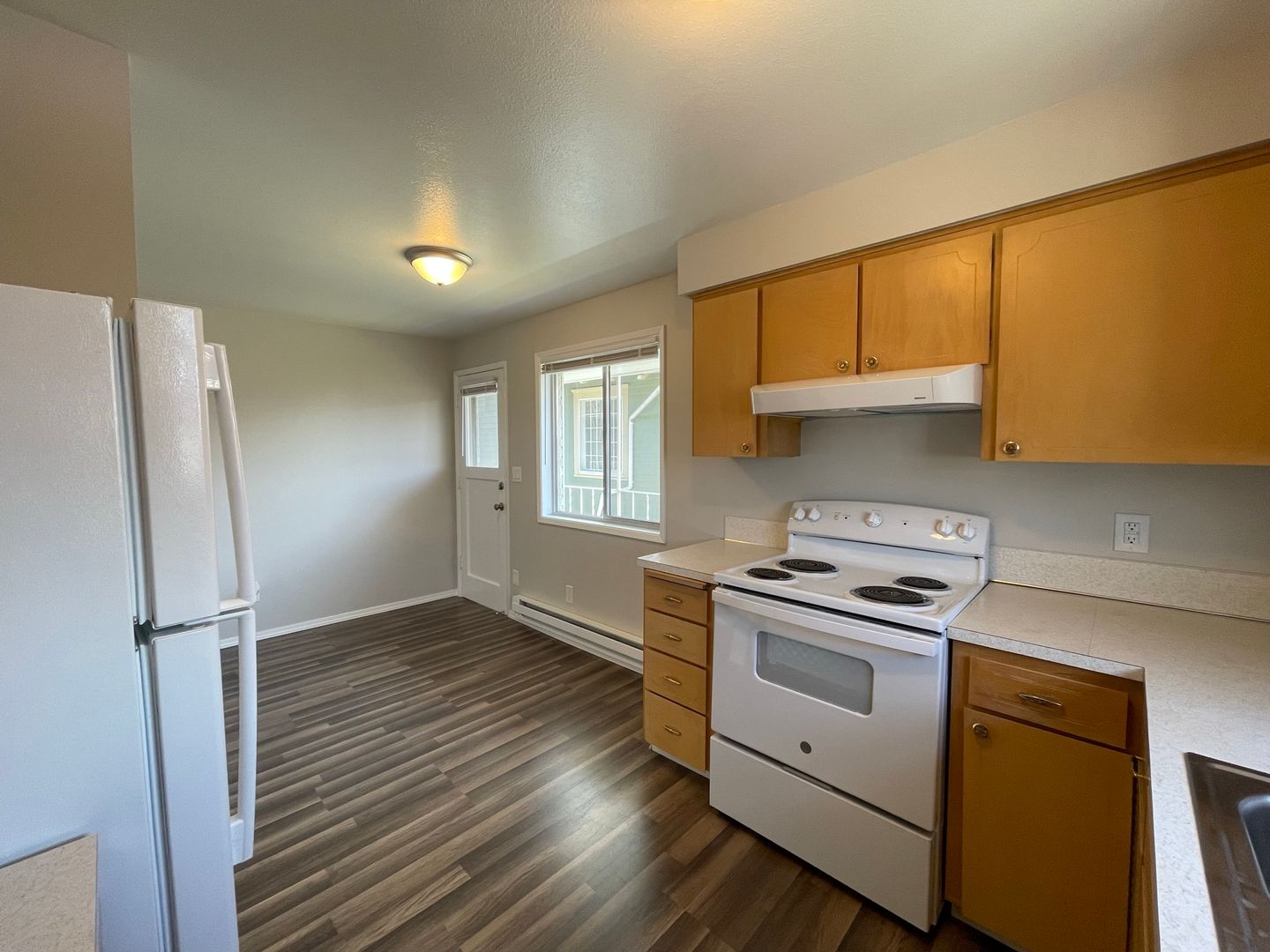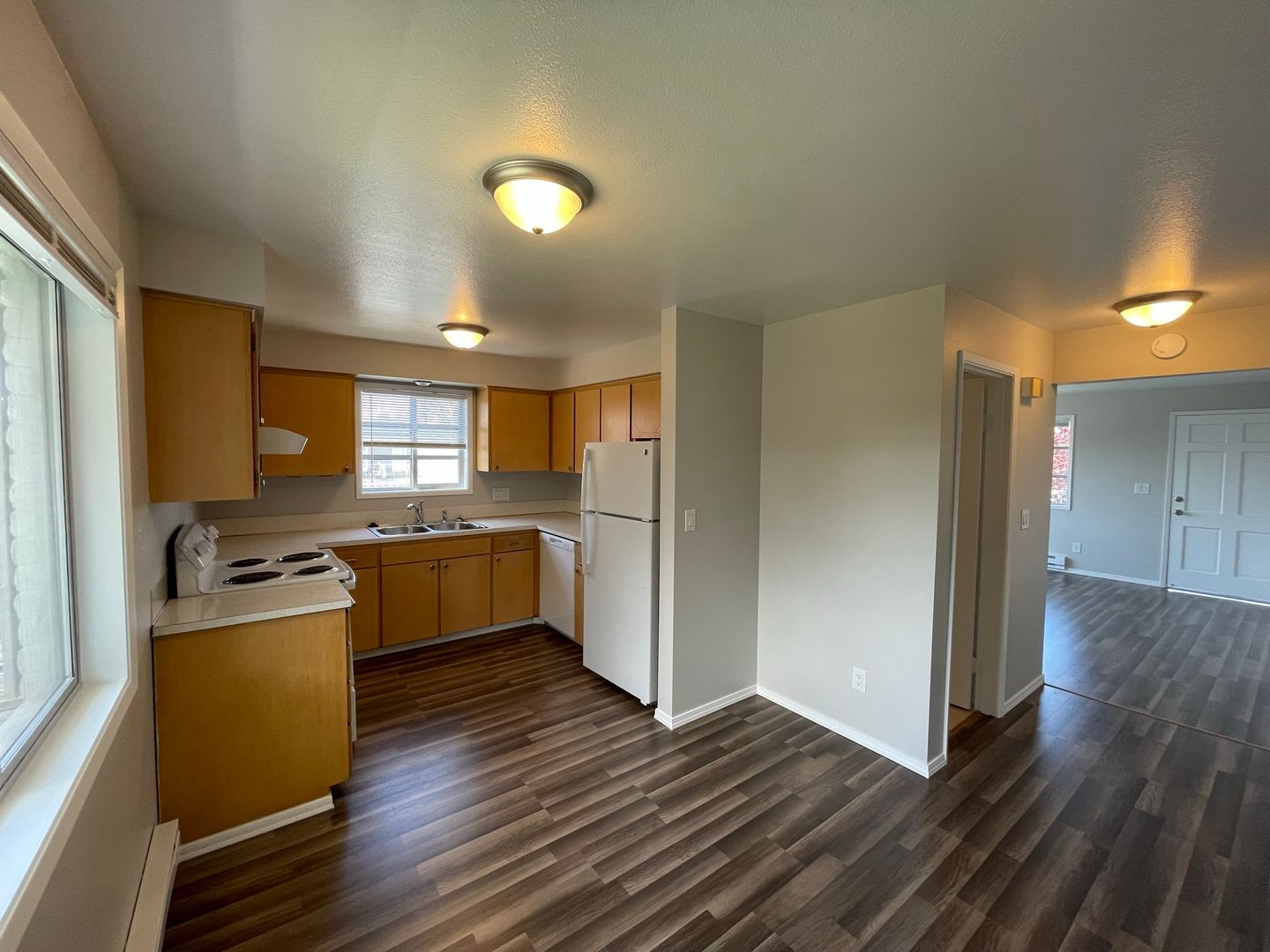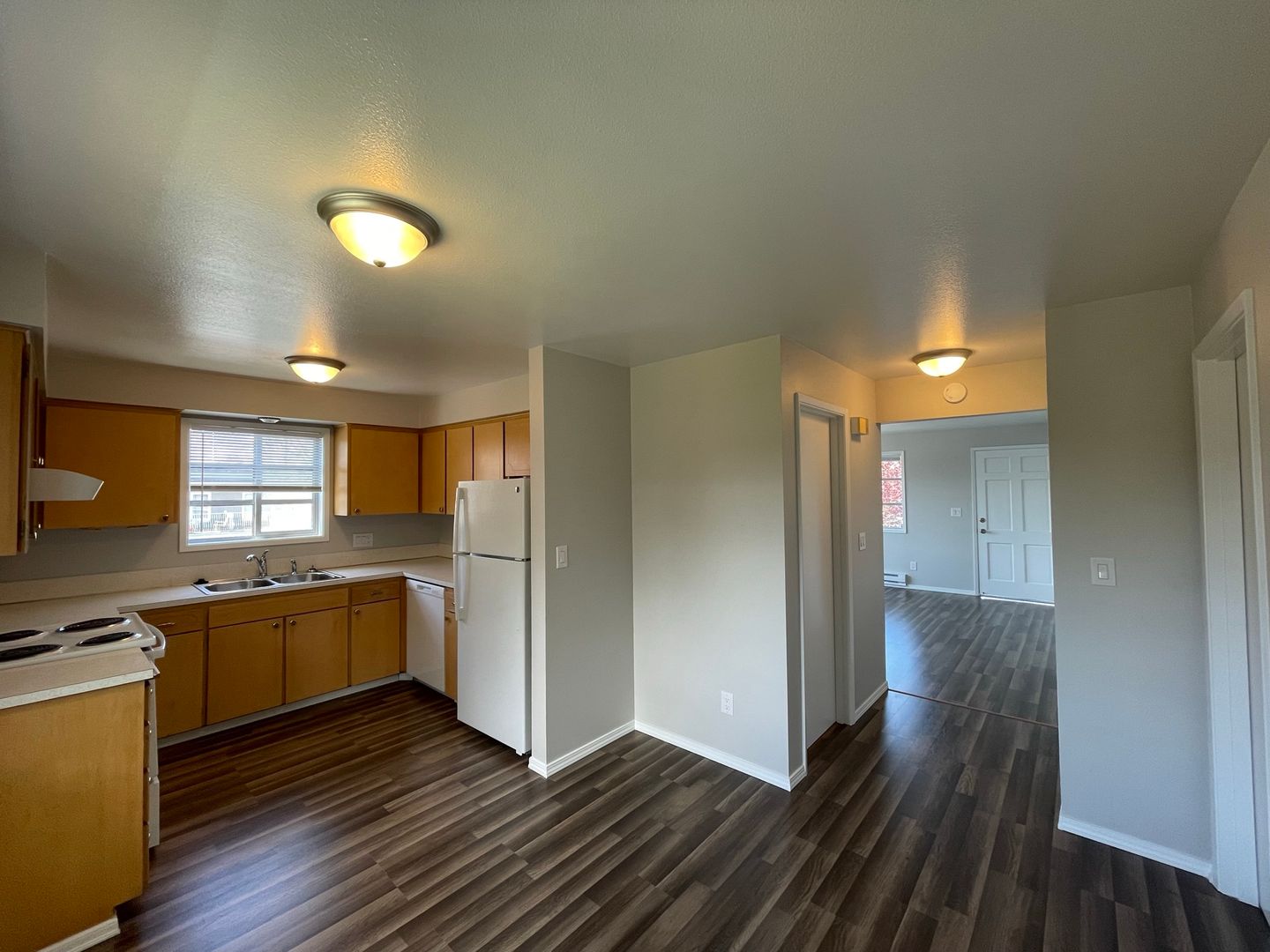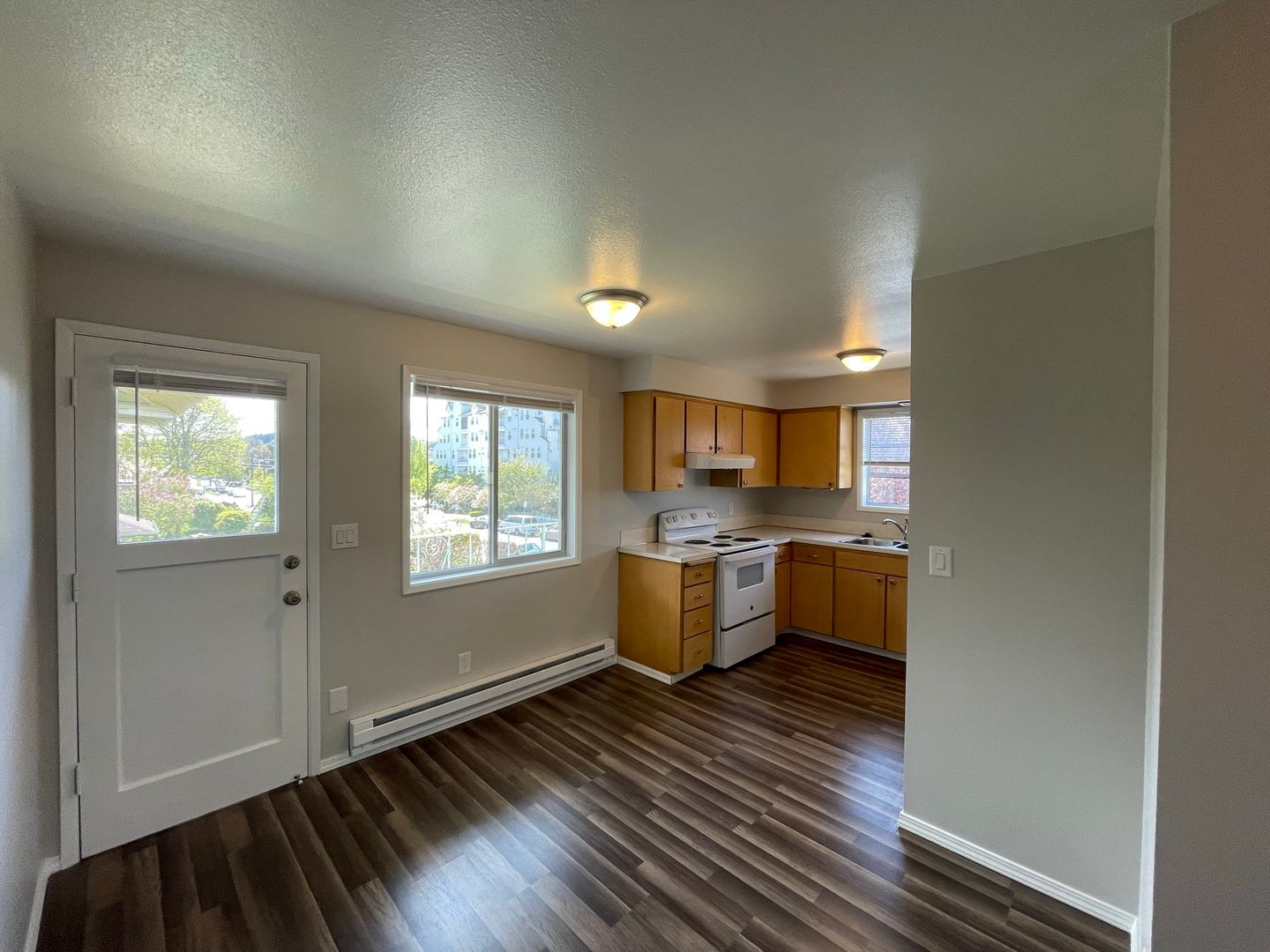 Top-floor corner 2 bed, 1 bath apartment in the desirable Bayside neighborhood of North Everett, offering 950 sq ft of bright, well-designed living space with spacious bedrooms and abundant storage throughout. The kitchen features ample counter space and cabinetry, complemented by durable LVP flooring throughout the home. Both bedrooms are generously sized with walk-in closets, including an exceptionally large primary with a built-in vanity. The updated bathroom includes a convenient linen closet, and recently updated appliances—dishwasher, stove/oven, and large refrigerator—complete this inviting and functional space.