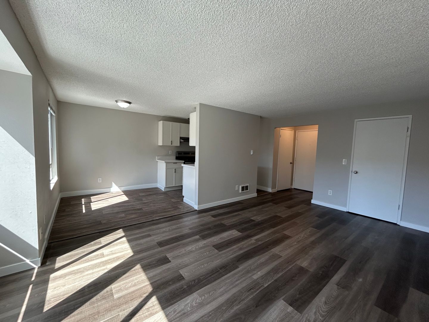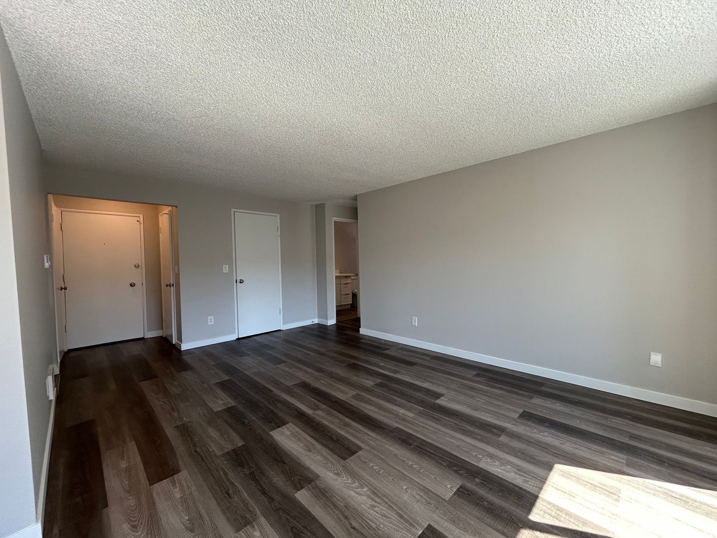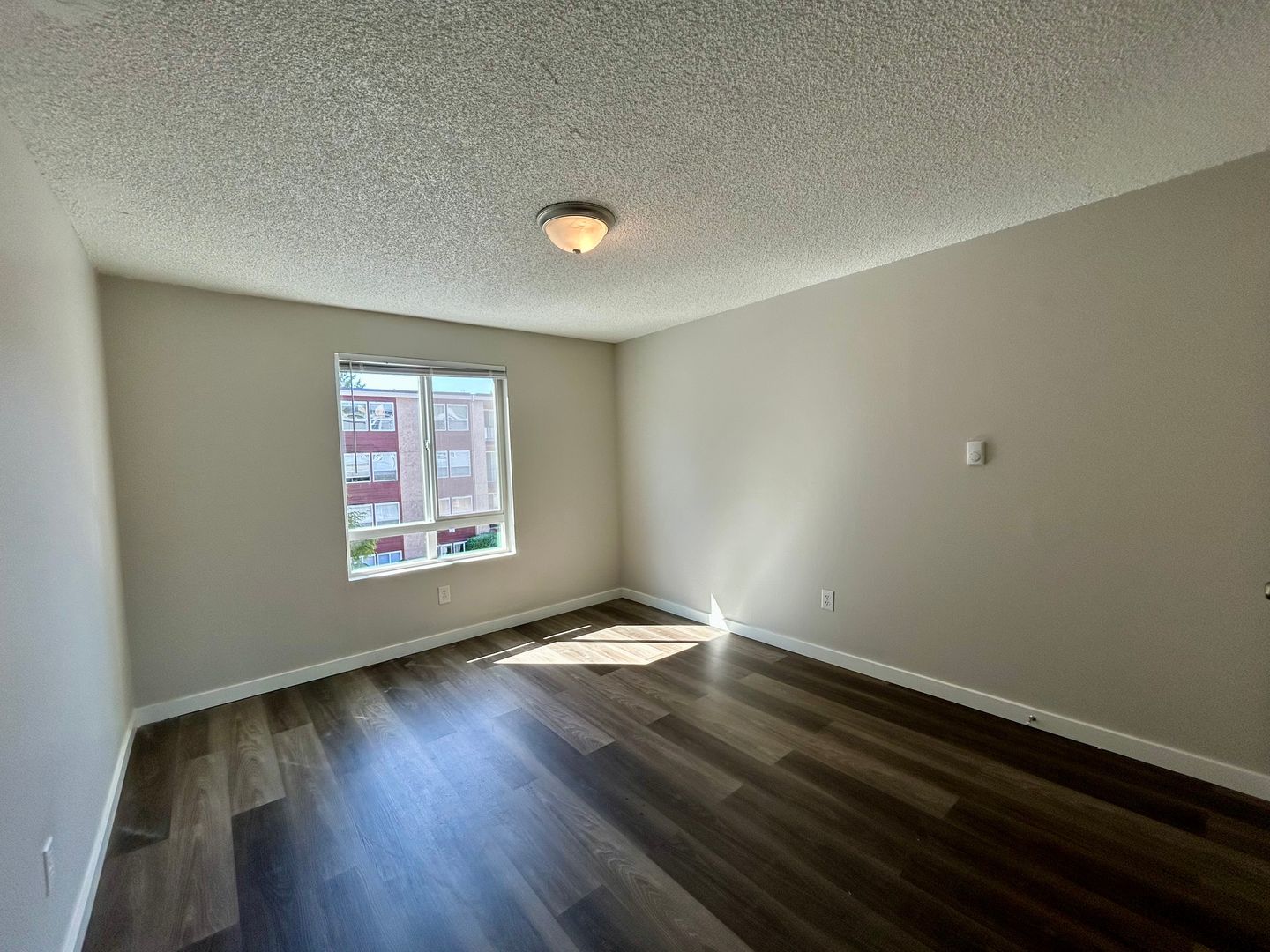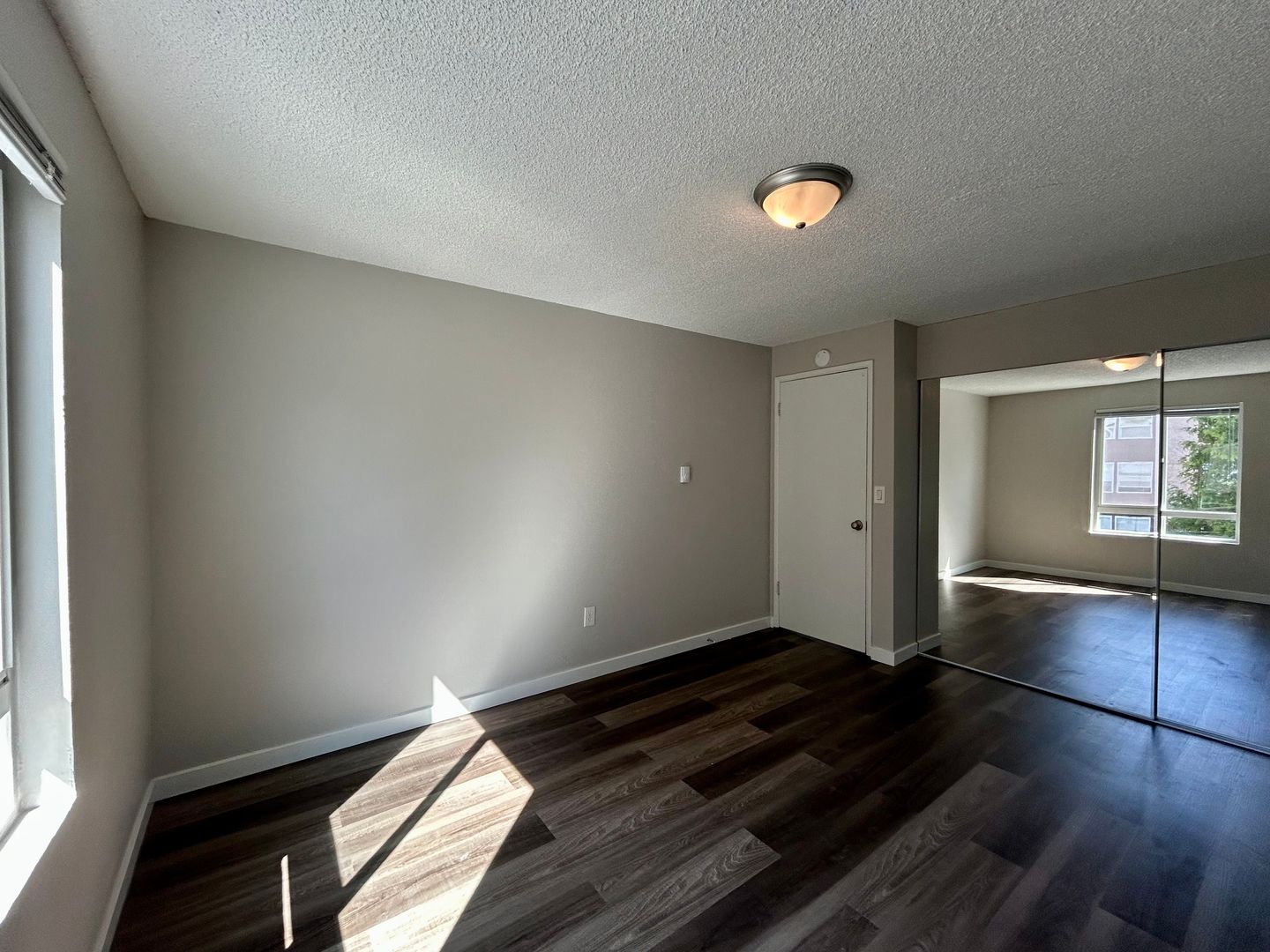 The unit has been updated with wood laminate flooring, paint, light fixtures, and appliances including dishwasher. Updated double pane vinyl windows bring in plenty of natural light to the spacious living room. Big closet and extra large closet for storage.