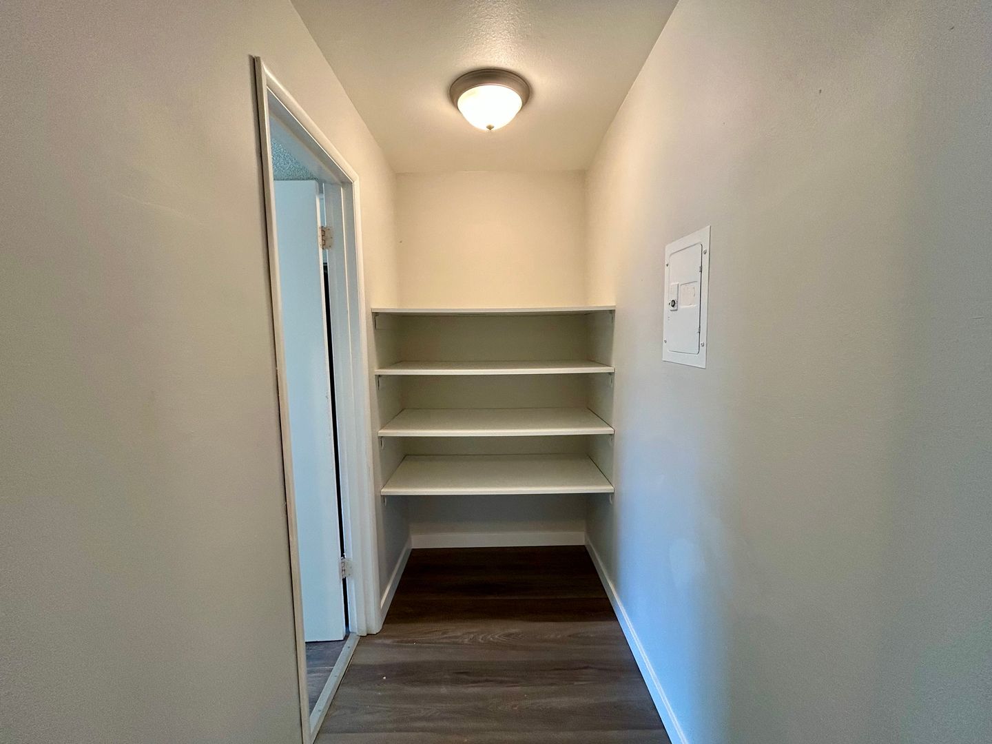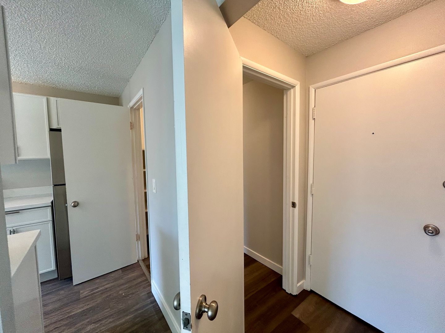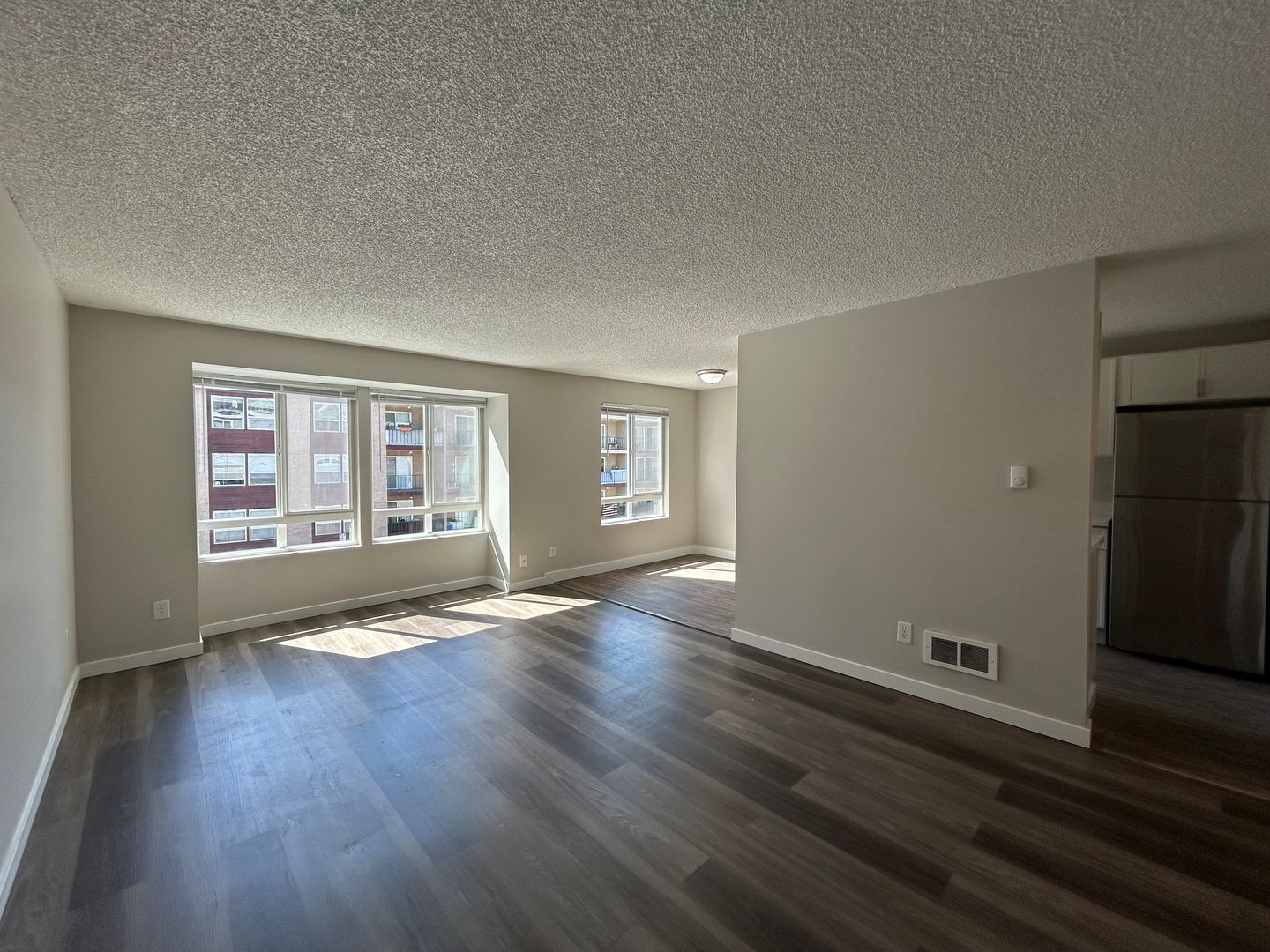 The unit has been updated with wood laminate flooring, paint, light fixtures, and appliances including dishwasher. Updated double pane vinyl windows bring in plenty of natural light to the spacious living room. Big closet and extra large closet for storage.