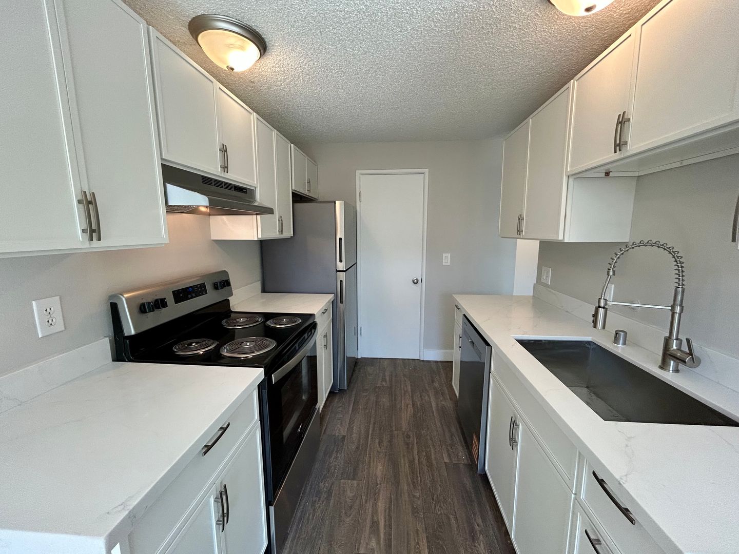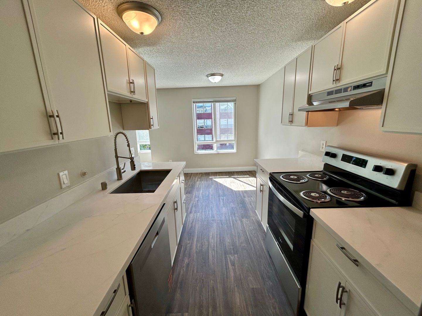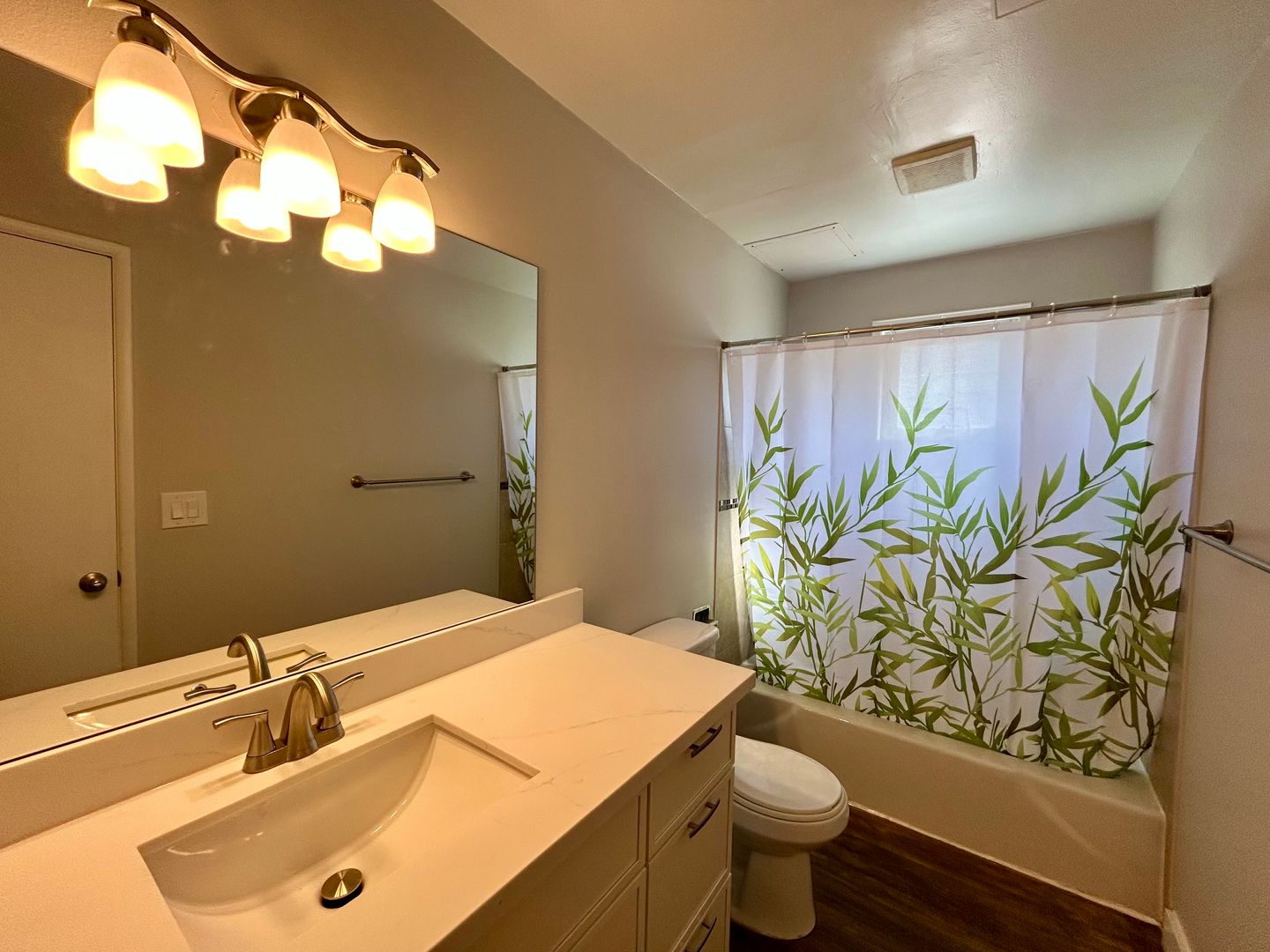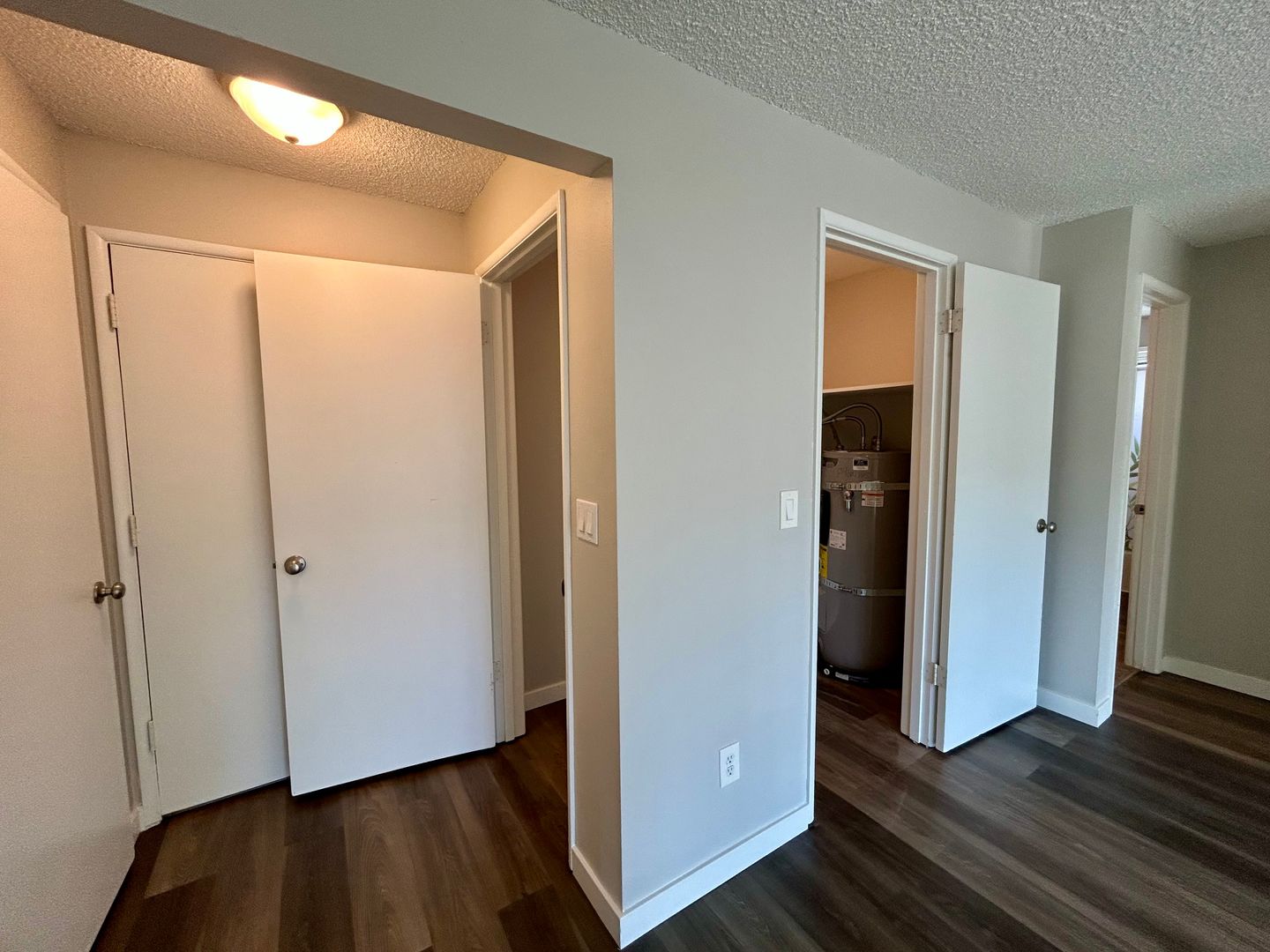 The unit has been updated with wood laminate flooring, paint, light fixtures, and appliances including dishwasher. Updated double pane vinyl windows bring in plenty of natural light to the spacious living room. Big closet and extra large closet for storage.