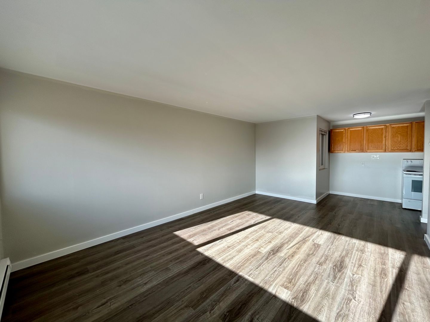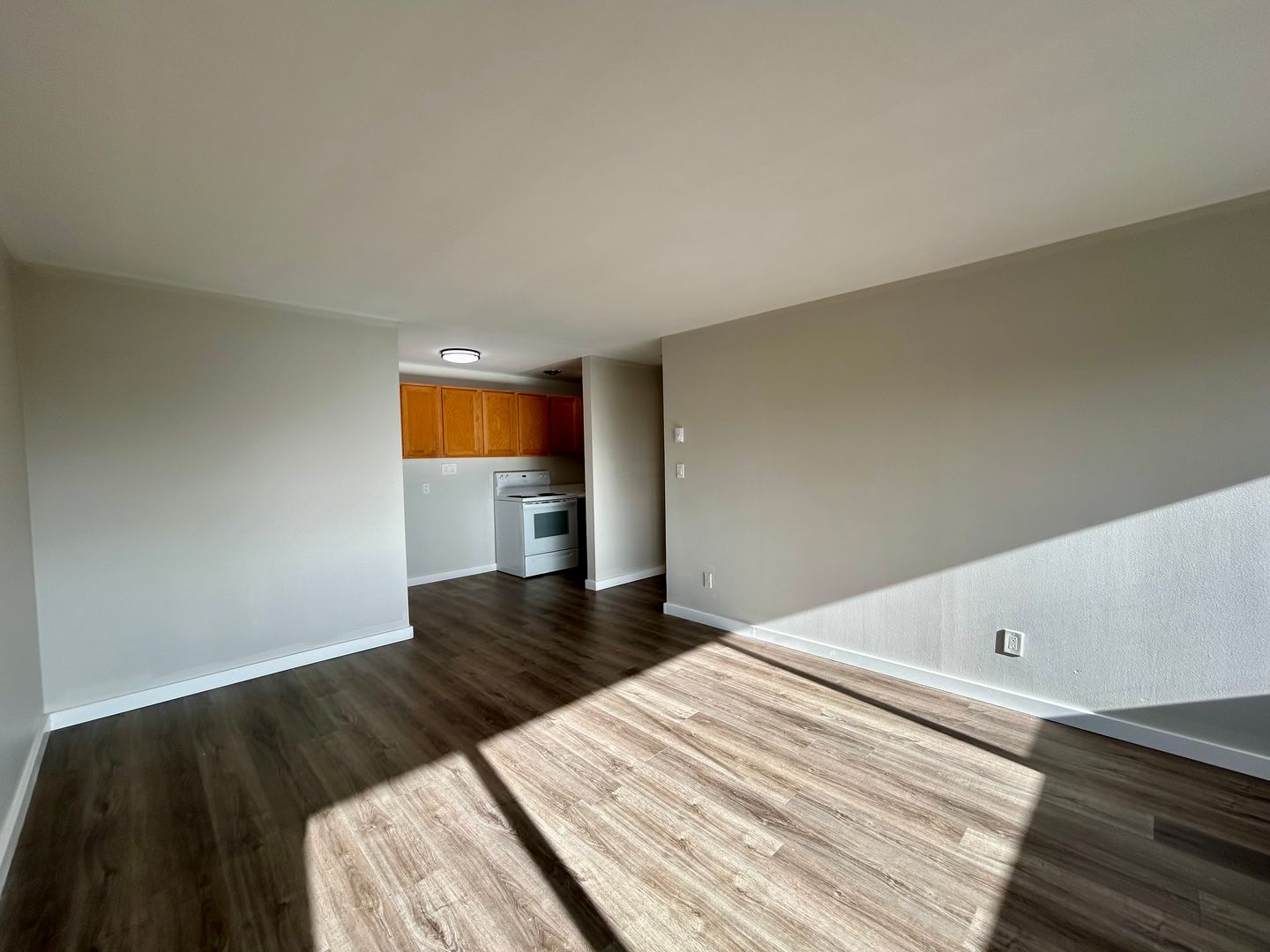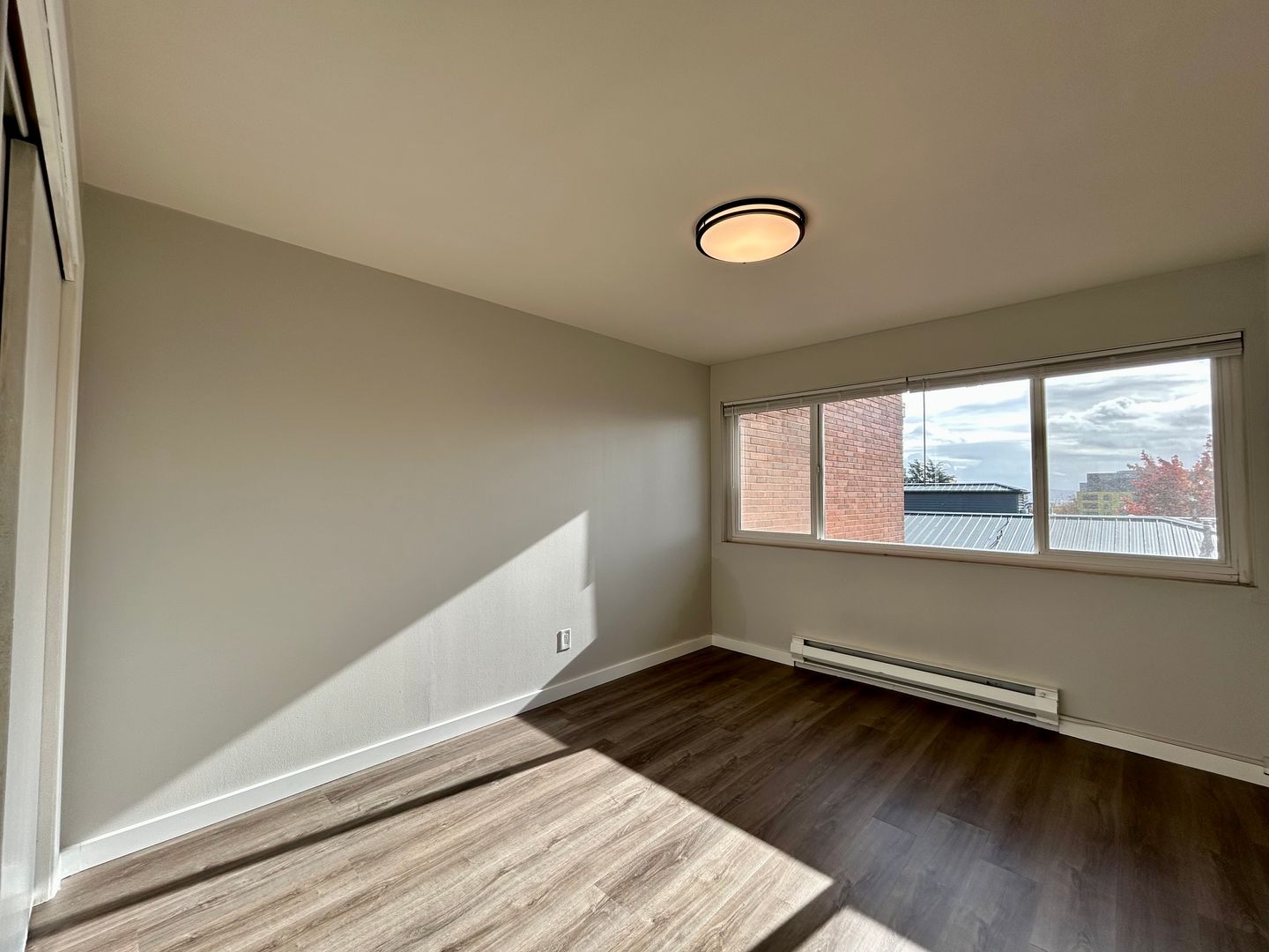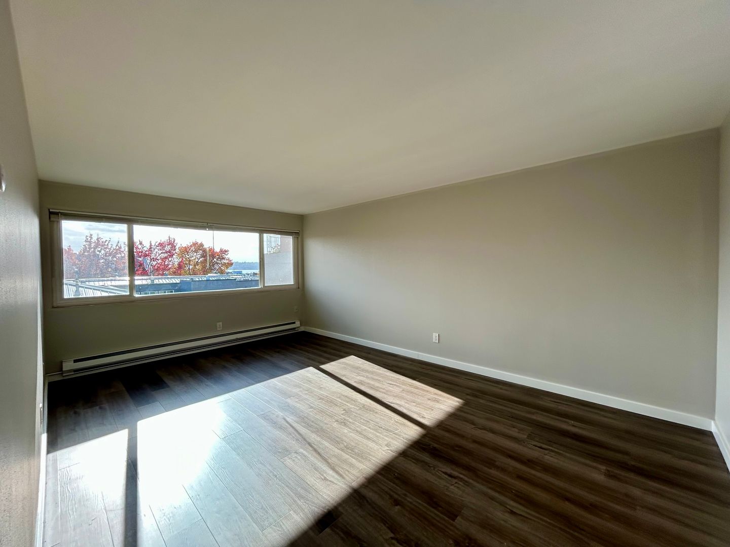 This Top Floor unit has a unique layout with high quality touches throughout. You'll immediately notice the charming vinyl wood floors throughout the entire unit and a large living room space, Several windows in the unit offer great views of the City of Seattle as well as give plenty of light and fresh air. The kitchen includes sink, oven / stove, refrigerator and PLENTY of cabinet storage.